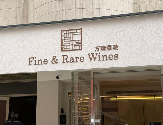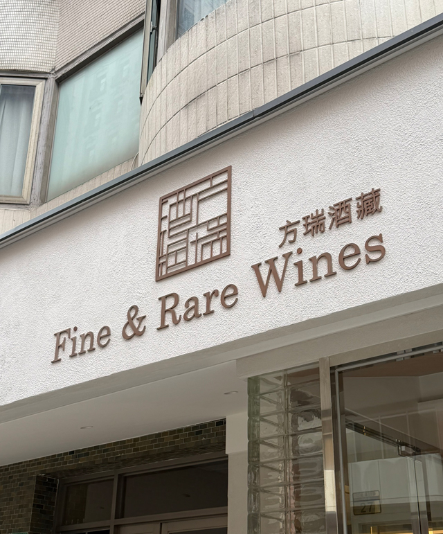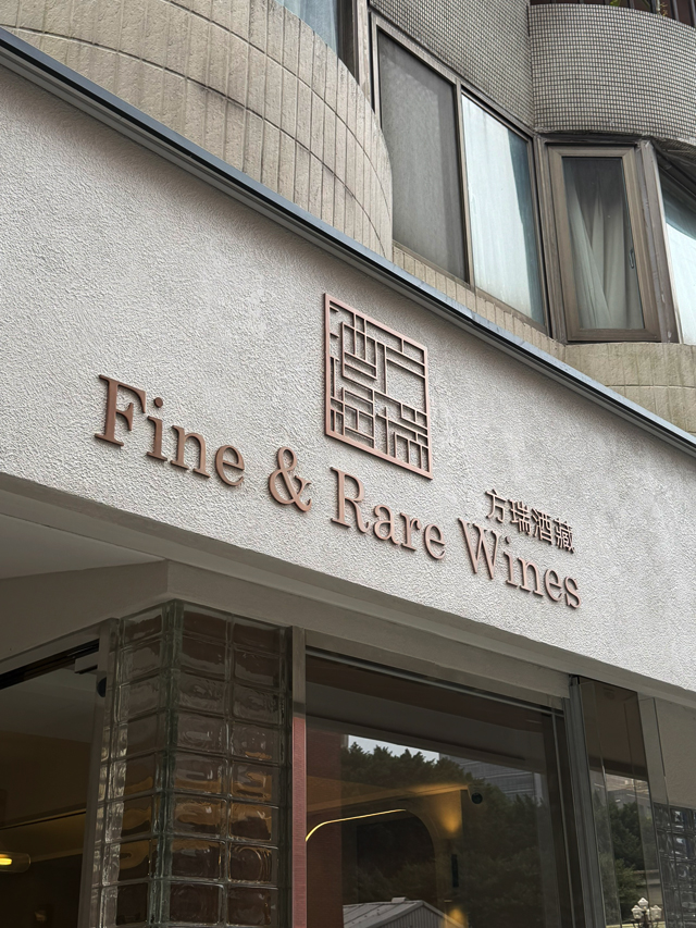 字體比例、間距與視覺平衡皆經過精密規劃,讓「方瑞酒藏」與「Fine & Rare Wines」在日夜光線下都能保持清晰識別度。